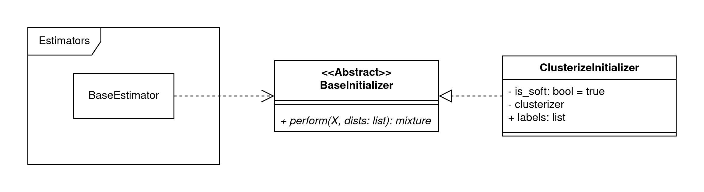 Было решено вынести инициализаторы в отдельный модуль, а так же не связывать BaseEstimator и BaseInitializer отношением композиции потому что: